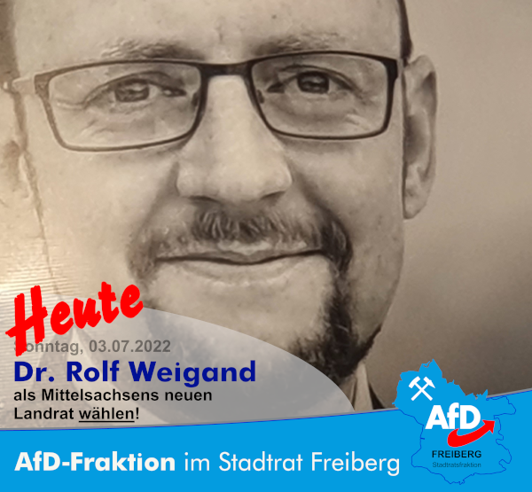 Wir bitten um rege Wahlbeteiligung anlässlich der heutigen Landratswahl in Mittelsachsen. Wir empfehlen die Wahl von Dr. Rolf Weigand. VIELEN DANK!